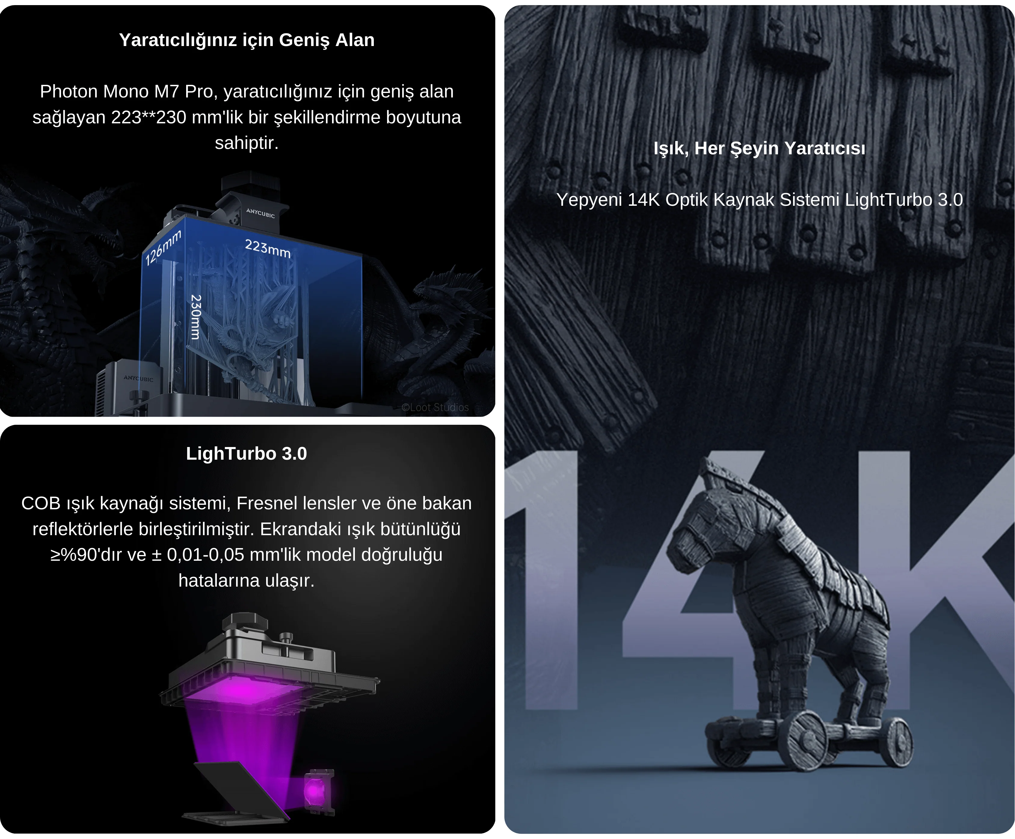 Bu özellikleriyle Anycubic Photon Mono M7 Pro, hem mühendislik prototipleri hem de detaylı figür üretimi gibi yüksek doğruluk isteyen işler için mükemmel bir seçimdir.
